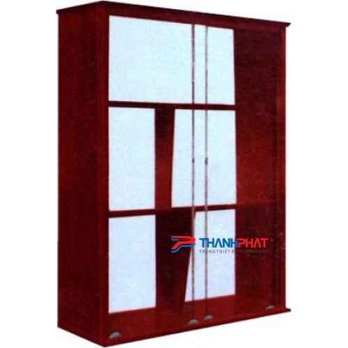 - Hai cánh cửa kính lùa có khoá, trong chia làm 3 ngăn có 16 khay nhựa đựng dụng cụ.Phía dưới 2 cửa pano mở, trong chia ngăn.